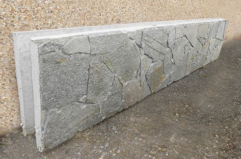 Finitura con doppia parete in cemento liscio a vista o con una parete rivestita in pietra.
