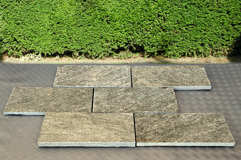 Home| Products| Residential| Pavements and wall coatings| Paving stones| Pavimento Luserna 60x30 piano a spacco naturale coste rifilate a macchina.