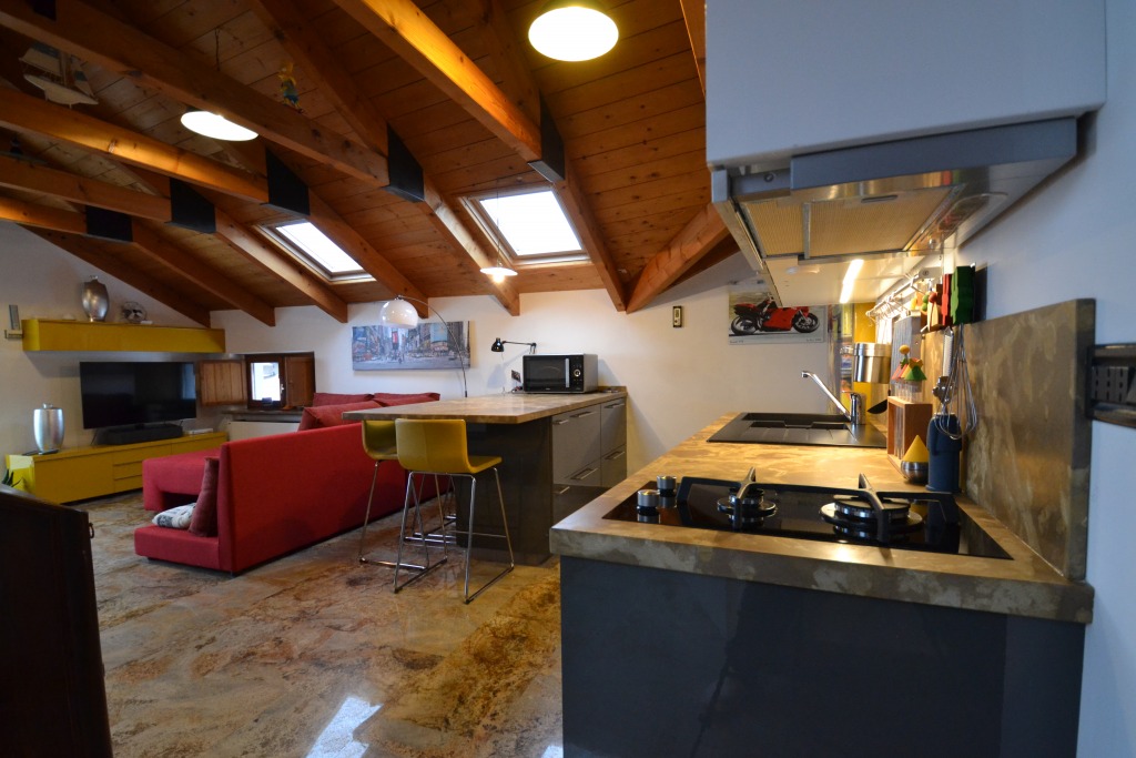 Titolo Piano cucina con penisola in Giallo Campidano.
