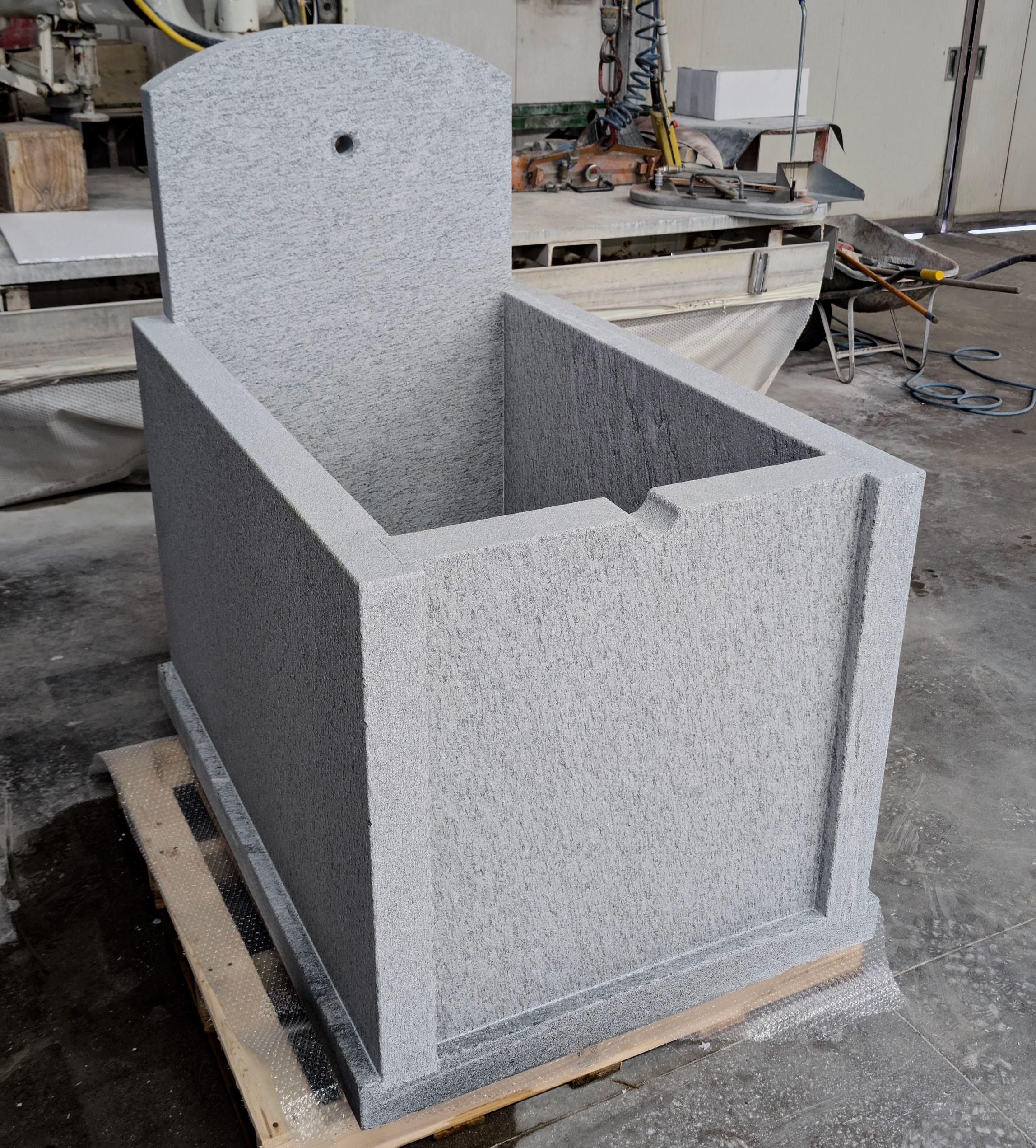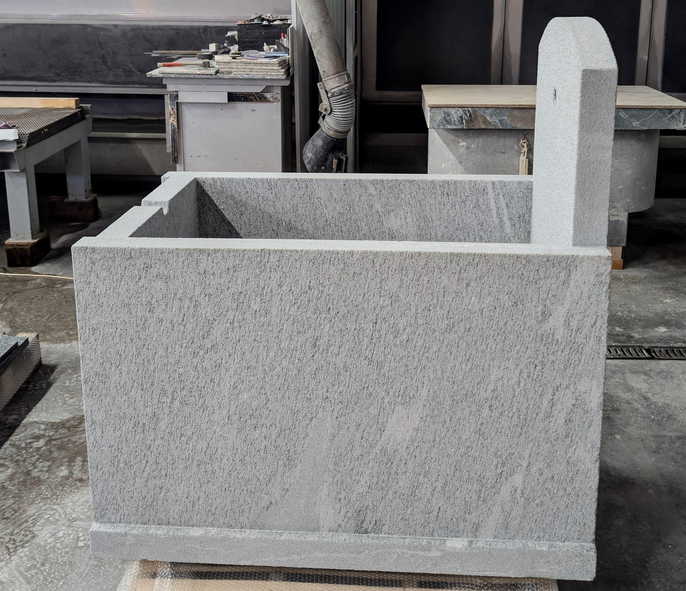 Costruita con lastre di Luserna monolitiche con incastri, foro per rubinetto e piletta per lo scarico.